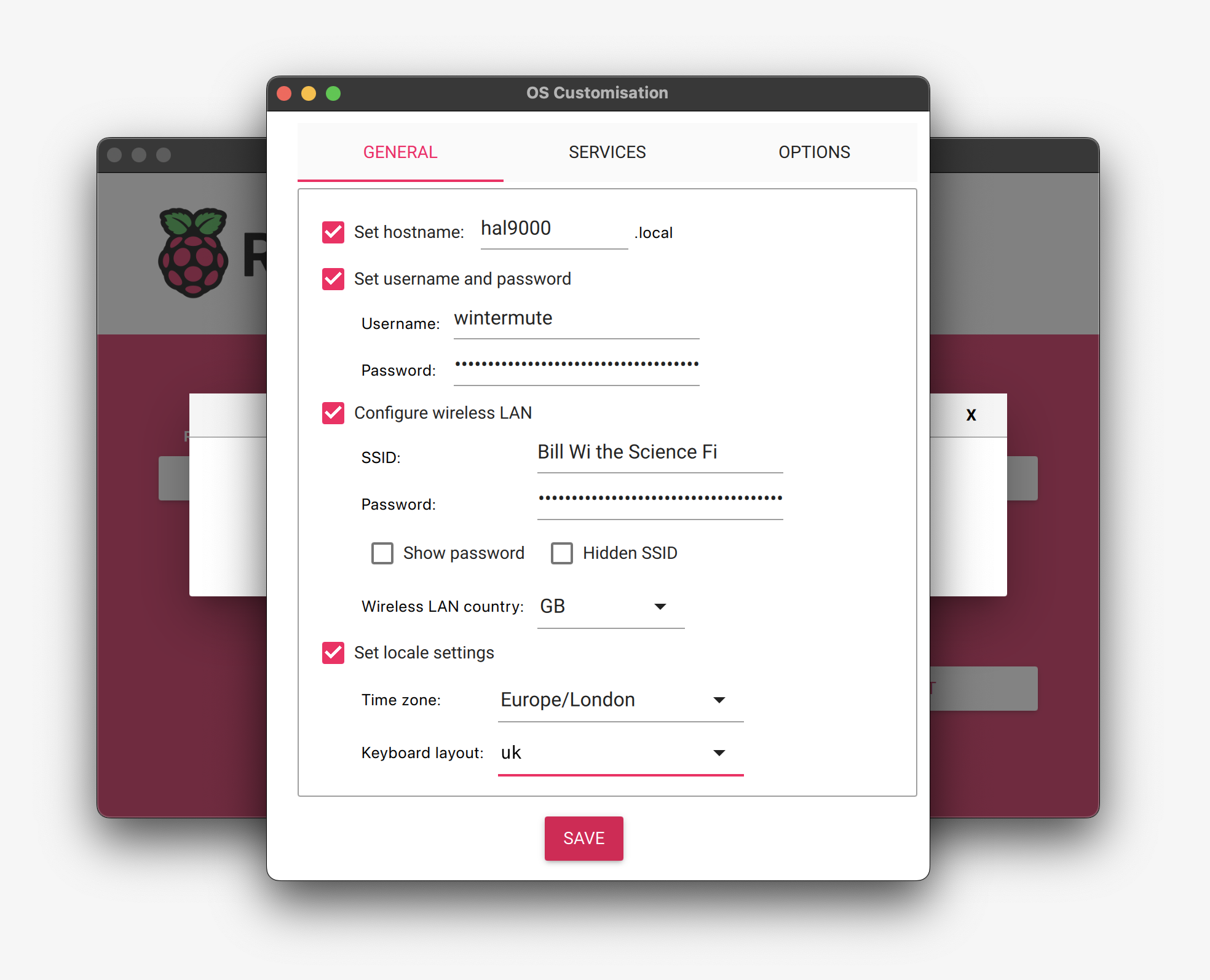 RPI Imager advanced options